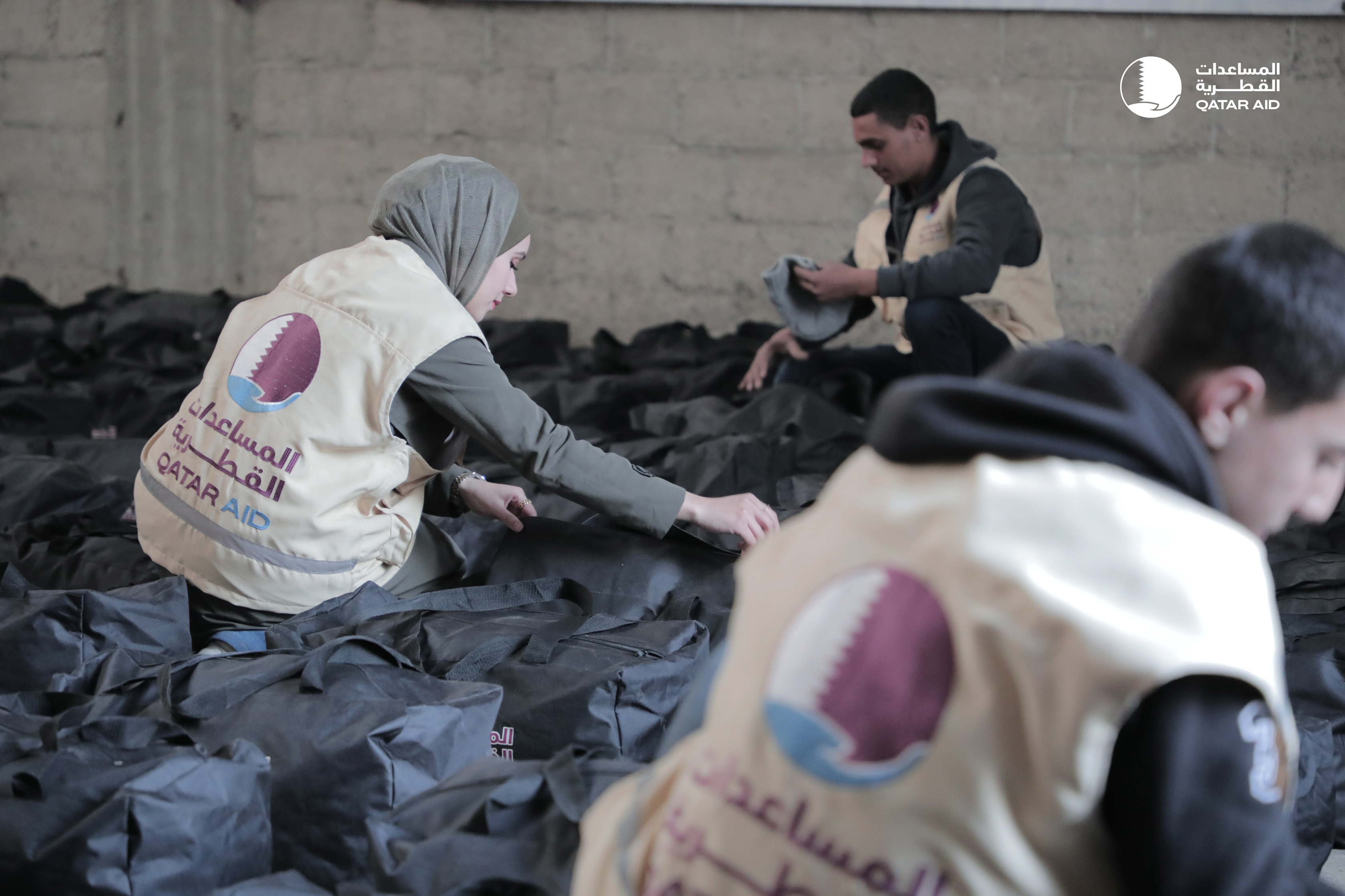 تزامناً مع دخول شهر رمضان المساعدات القطرية توزّع حقائب الملابس والمستلزمات الشتوية لآلاف الأسر في غزة