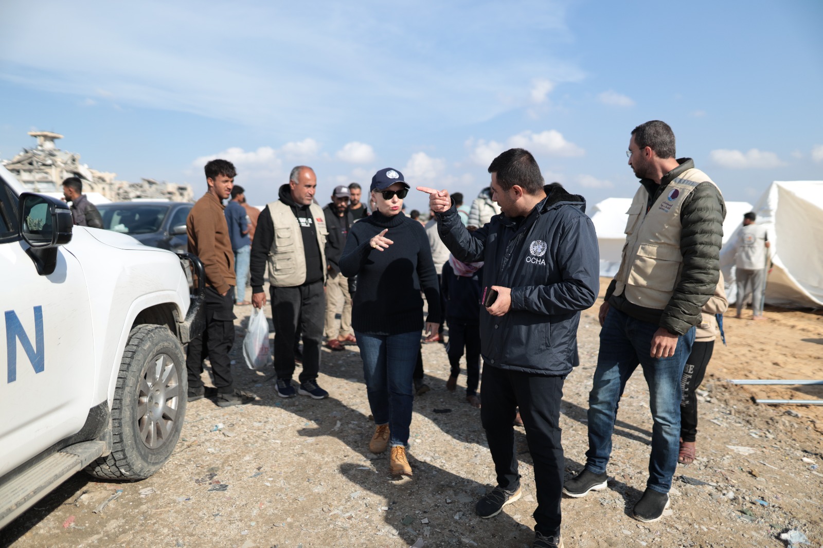 قامت السيدة سوزانا تكاليك، نائبة المنسق الإنساني في مكتب الأمم المتحدة لتنسيق الشؤون الإنسانية (OCHA) في غزة، بزيارة ميدانية إلى “مخيم قطر” بمدينة سمو الشيخ حمد بن خليفة آل ثاني السكنية في خانيونس، للاطلاع على سير أعمال إنشاء وتجهيز المخيم وإجراءات الإيواء للعائلات المتضررة.