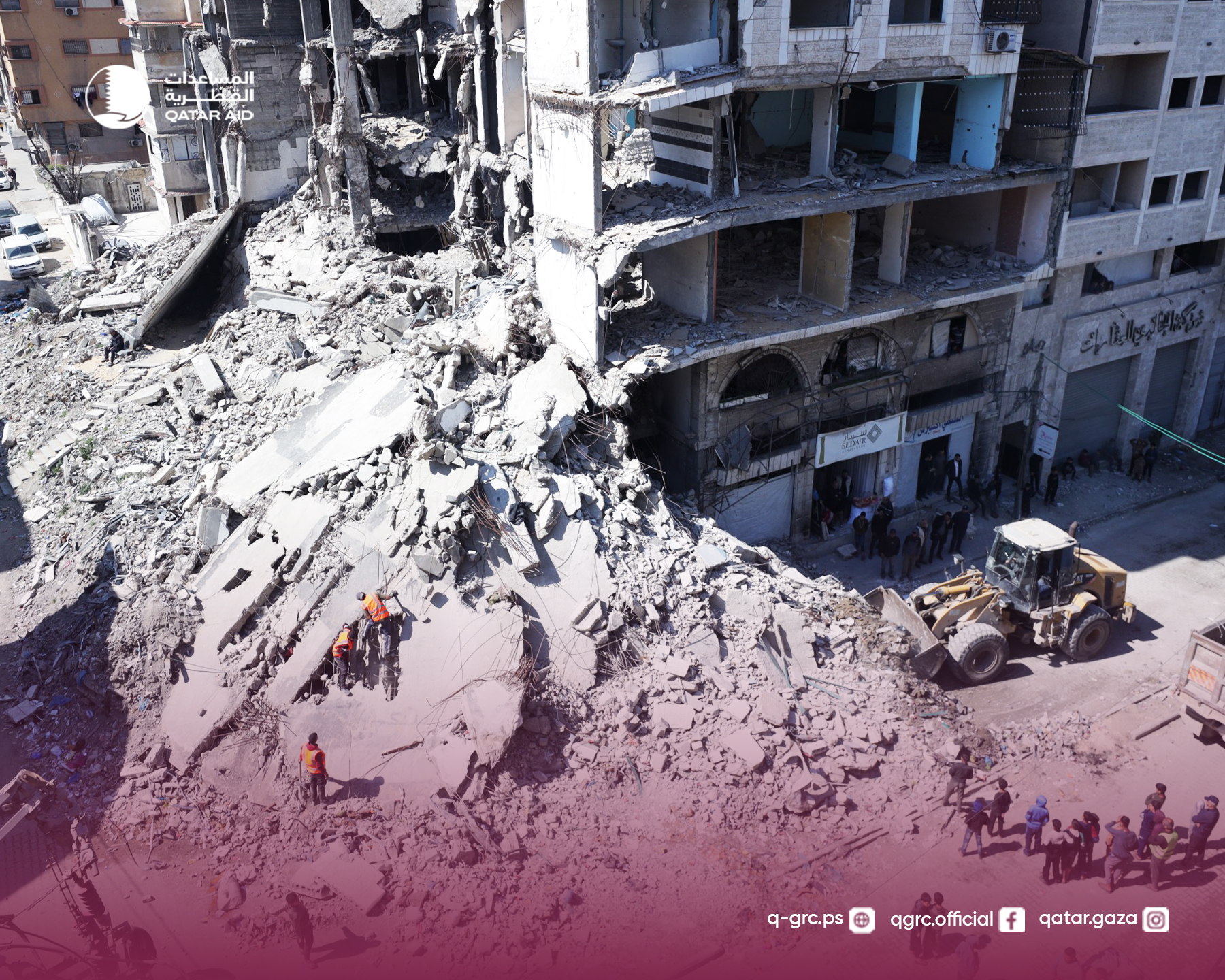 بدأت اللجنة القطرية لإعادة إعمار غزة، وضمن المساعدات القطرية لأهالي غزة، تنفيذ مشروعٍ لإزالة الكتل الخرسانية المتدلية والآيلة للسقوط من المباني المتضررة والخطرة في مناطق مختلفة من محافظات قطاع غزة.