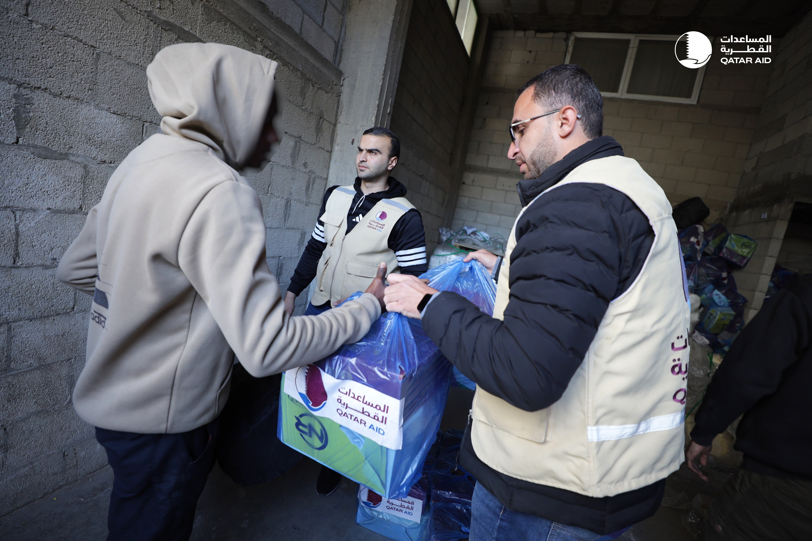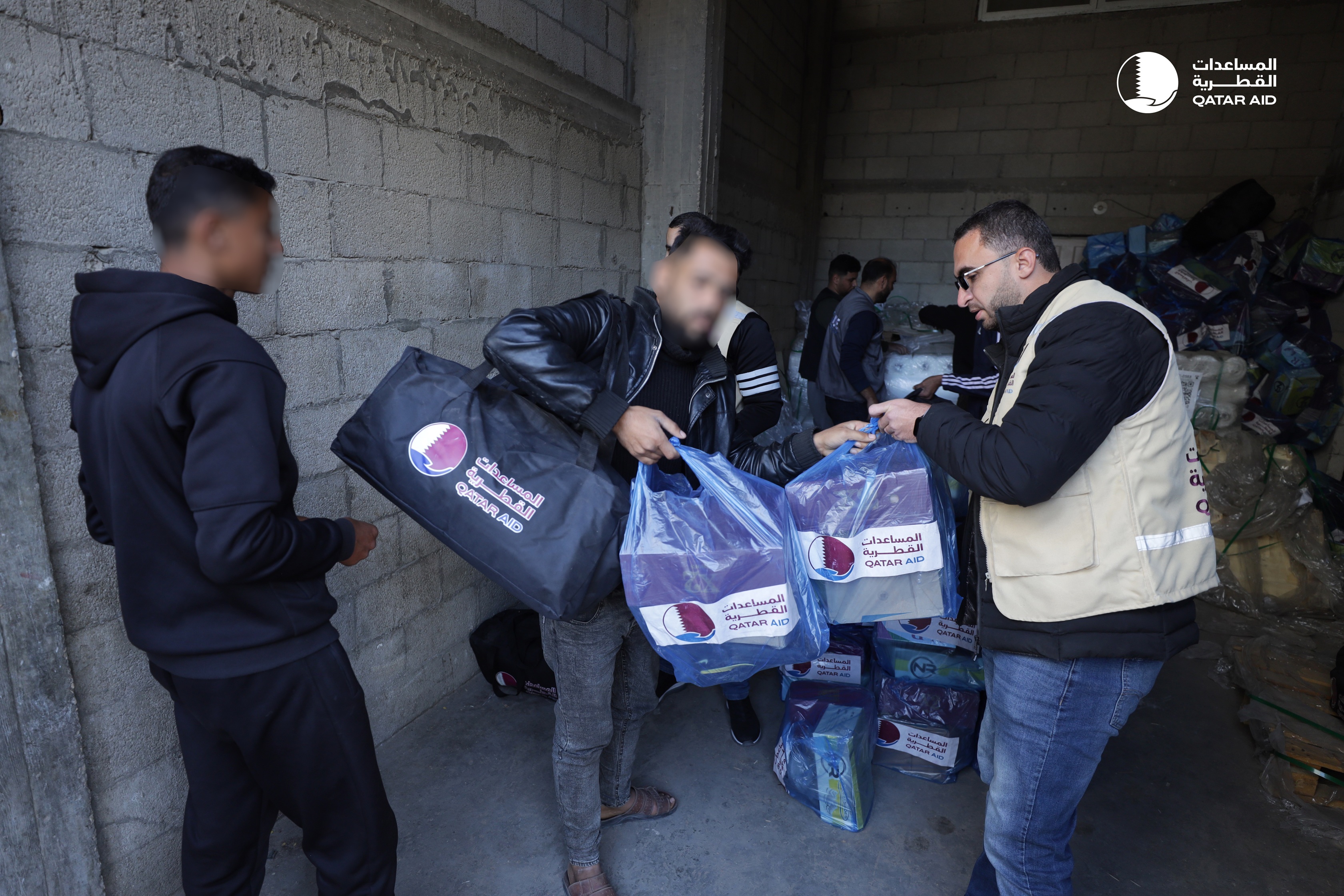 تزامناً مع دخول شهر رمضان المساعدات القطرية توزّع حقائب الملابس والمستلزمات الشتوية لآلاف الأسر في غزة