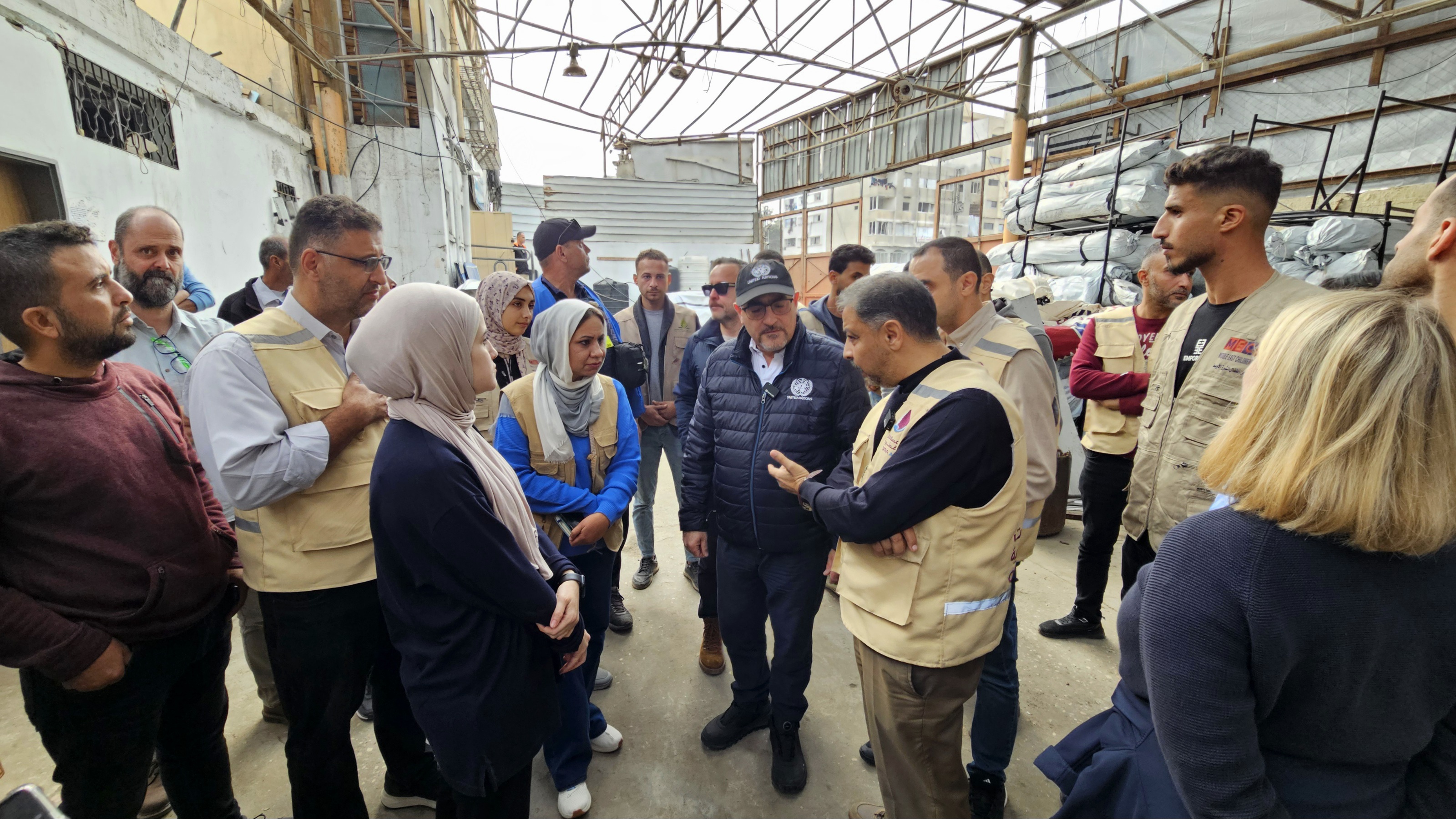 وتضمن الوفد كلا من سوزانا تكاليك نائبة المنسق الإنساني للأمم المتحدة في الأراضي الفلسطينية، وطاهر إبراهيم رئيس مكتب الأمم المتحدة لتنسيق الشؤون الإنسانية (OCHA) في غزة، وأليساندرو مراكيتش رئيس برنامج الأمم المتحدة الإنمائي (UNDP) في غزة، وسيباستيان ثرايف المستشار الفني العالمي لمنظمة ACTED، وأمجد الشوا رئيس شبكة المنظمات الأهلية الفلسطينية (PNGO).